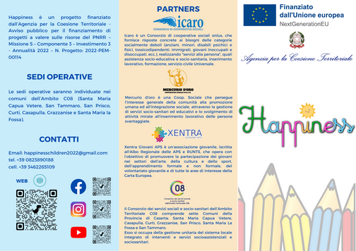 PROGETTO HAPPINESS 2.0 - Progetto finanziato dall’Agenzia per la Coesione Territoriale - Avviso pubblico per il finanziamento di progetti a valere sulle risorse del PNRR – PIANO NAZIONALE DI RIPRESA E RESILIENZA (PNRR) - MISSIONE 5 INCLUSIONE E COESIONE - COMPONENTE 3 - INTERVENTI SPECIALI PER LA COESIONE TERRITORIALE - INVESTIMENTO 3 - INTERVENTI SOCIO-EDUCATIVI STRUTTURATI PER COMBATTERE LA POVERTÀ EDUCATIVA NEL MEZZOGIORNO A SOSTEGNO DEL TERZO SETTORE - CLP “2023-PE3-00269”, CUP J94C23000420004